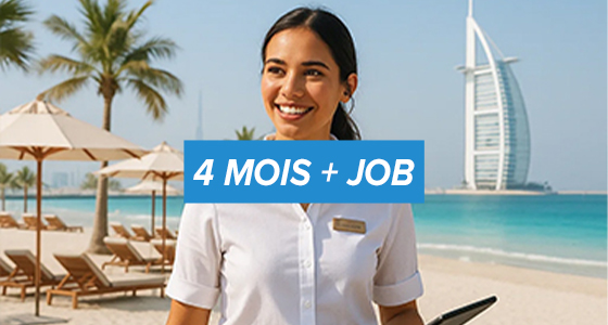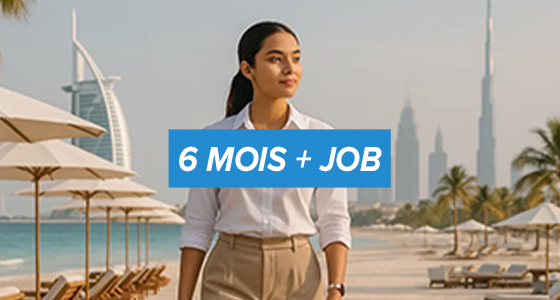- 6 mois + job : le visa est compris dans la formation et vous permet de rester à Dubaï pour une durée de 1 an. Votre visa vous permettra de travailler sur place pendant 1 an maximum.
